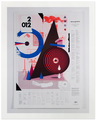 The result is a fun, bright poster which combines product design and graphic design almost seamlessly. The poster shows a photograph of tools typically used in a printing workshop, various layers of graphic imagery and geometrical shapes have been added which in turn form a smiling face.